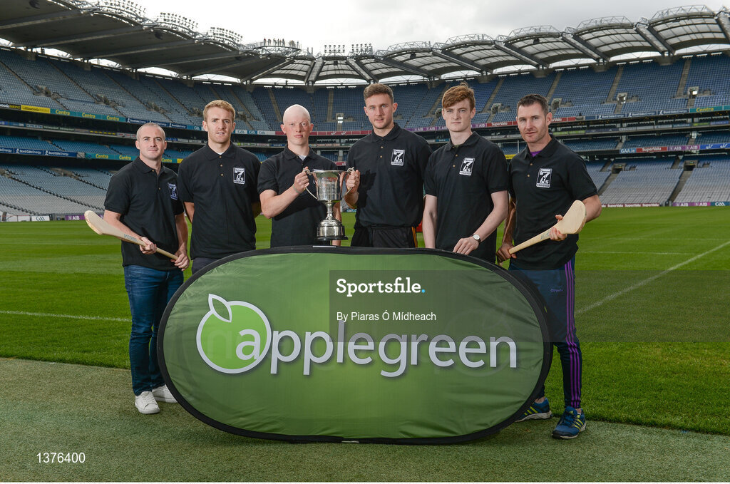 23 August 2017; In attendance at the Applegreen All-Ireland Hurling 7s launch, are, from left, Dublin hurler David O'Callaghan, Tipperary hurler Noel McGrath, Dublin hurler Fergal Whitely, Kilkenny hurler Robert Lennon, Dublin hurler Cian Mac Gabhann, and former Dublin hurler Niall Corcoran at Croke Park in Dublin. Photo by Piaras Ó Mídheach/Sportsfile