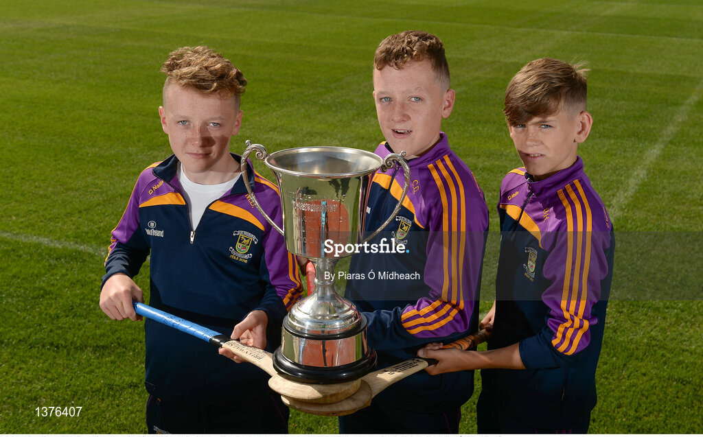 23 August 2017; Kilmacud Crokes players, from left, Michael Donnelly, Cian Donnelly and Brian Hayes in attendance at the Applegreen All-Ireland Hurling 7s launcht at Croke Park in Dublin. Photo by Piaras Ó Mídheach/Sportsfile