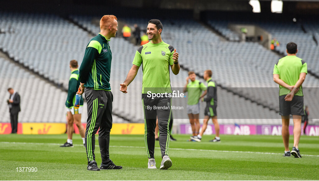 26 August 2017; Johnny Buckley, left, and Bryan Sheehan of Kerry walk the pitch prior to the GAA Football All-Ireland Senior Championship Semi-Final Replay match between Kerry and Mayo at Croke Park in Dublin. Photo by Brendan Moran/Sportsfile