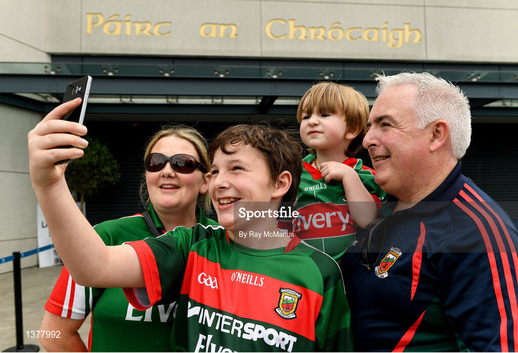 26 August 2017; Mayo supporters Marie, Conor, Oisín and Keith Martin, from Ballina, outside Croke Park before the GAA Football All-Ireland Senior Championship Semi-Final Replay match between Kerry and Mayo at Croke Park in Dublin. Photo by Ray McManus/Sportsfile