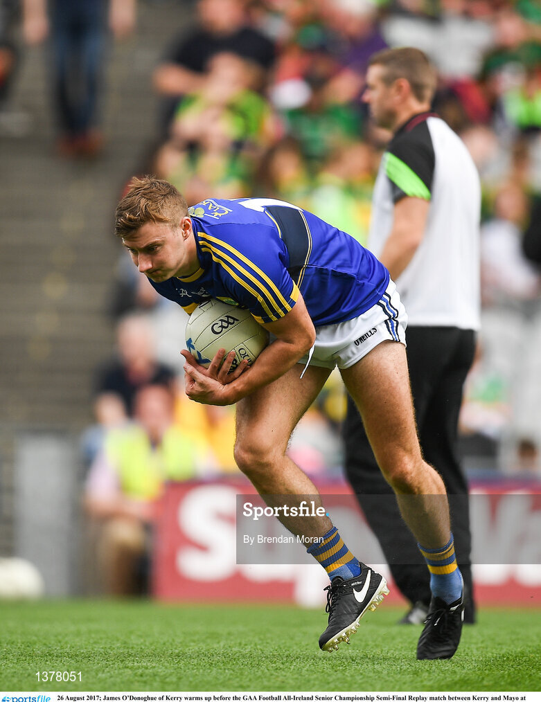 26 August 2017; James O’Donoghue of Kerry warms up before the GAA Football All-Ireland Senior Championship Semi-Final Replay match between Kerry and Mayo at Croke Park in Dublin. Photo by Brendan Moran/Sportsfile