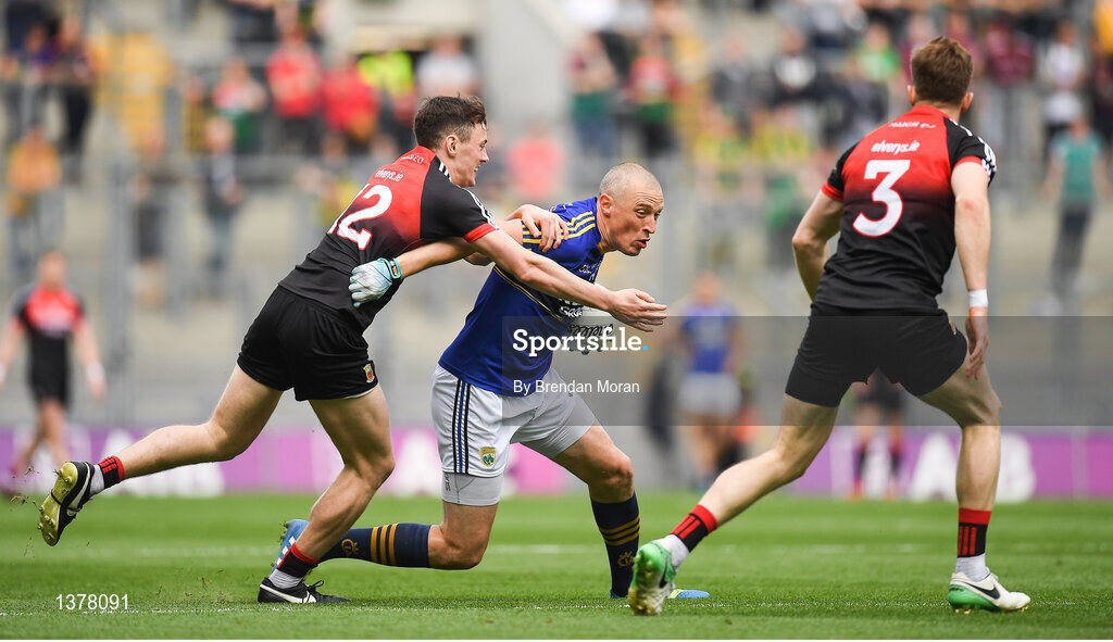 26 August 2017; Kieran Donaghy of Kerry in action against Diarmuid O'Connor of Mayo during the GAA Football All-Ireland Senior Championship Semi-Final Replay match between Kerry and Mayo at Croke Park in Dublin. Photo by Brendan Moran/Sportsfile