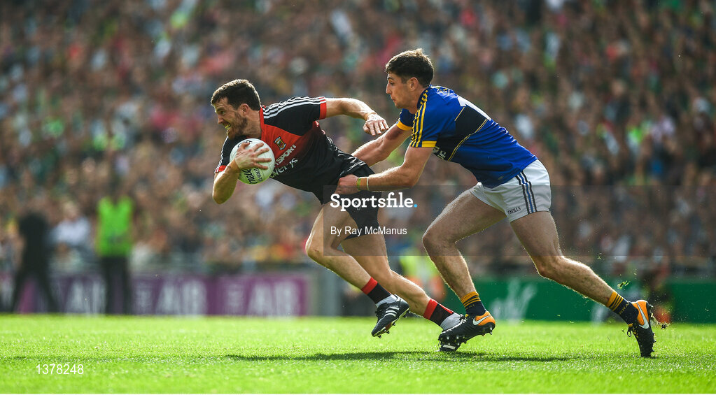 26 August 2017; Chris Barrett of Mayo in action against Paul Geaney of Kerry during the GAA Football All-Ireland Senior Championship Semi-Final Replay match between Kerry and Mayo at Croke Park in Dublin. Photo by Ray McManus/Sportsfile