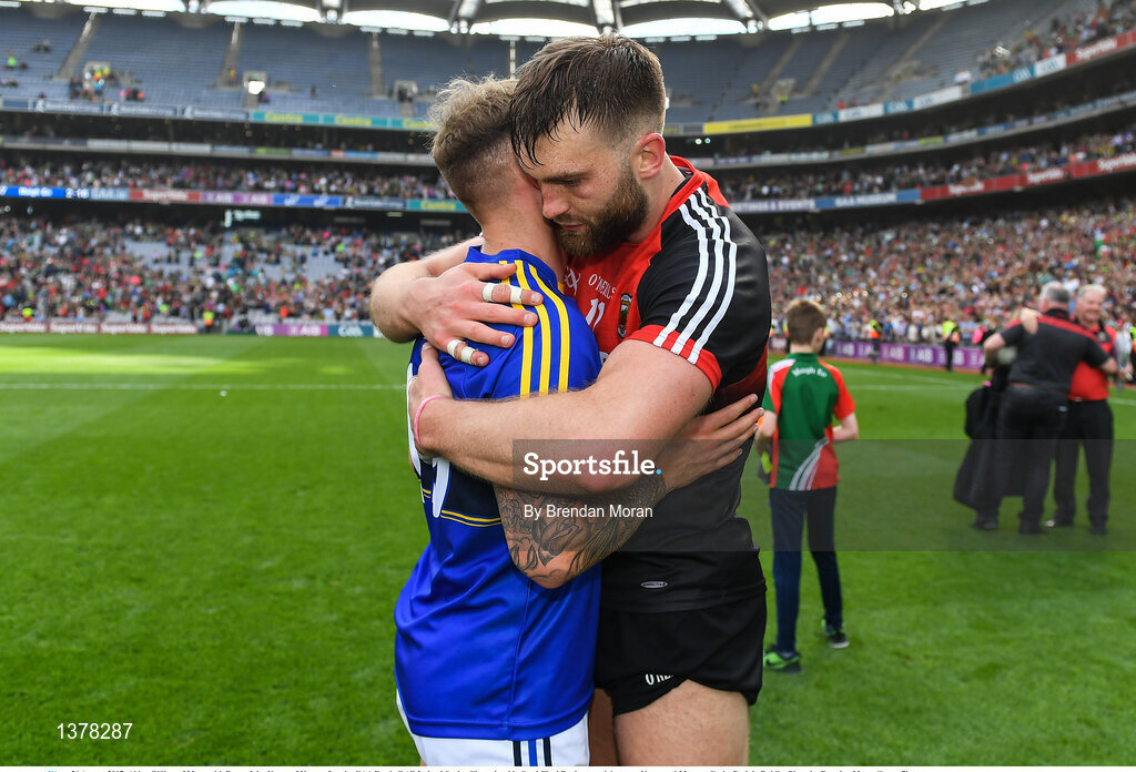 26 August 2017; Aidan O'Shea of Mayo with Barry John Keane of Kerry after the GAA Football All-Ireland Senior Championship Semi-Final Replay match between Kerry and Mayo at Croke Park in Dublin. Photo by Brendan Moran/Sportsfile