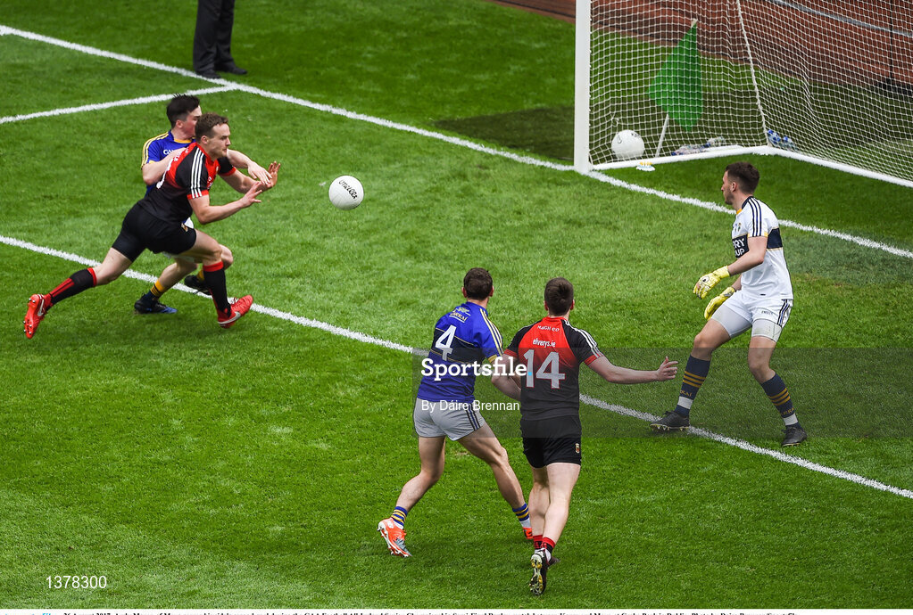 26 August 2017; Andy Moran of Mayo scores his side's second goal during the GAA Football All-Ireland Senior Championship Semi-Final Replay match between Kerry and Mayo at Croke Park in Dublin. Photo by Daire Brennan/Sportsfile
