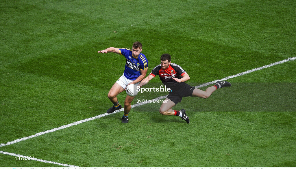 26 August 2017; James O'Donoghue of Kerry in action against Chris Barrett of Mayo during the GAA Football All-Ireland Senior Championship Semi-Final Replay match between Kerry and Mayo at Croke Park in Dublin. Photo by Daire Brennan/Sportsfile