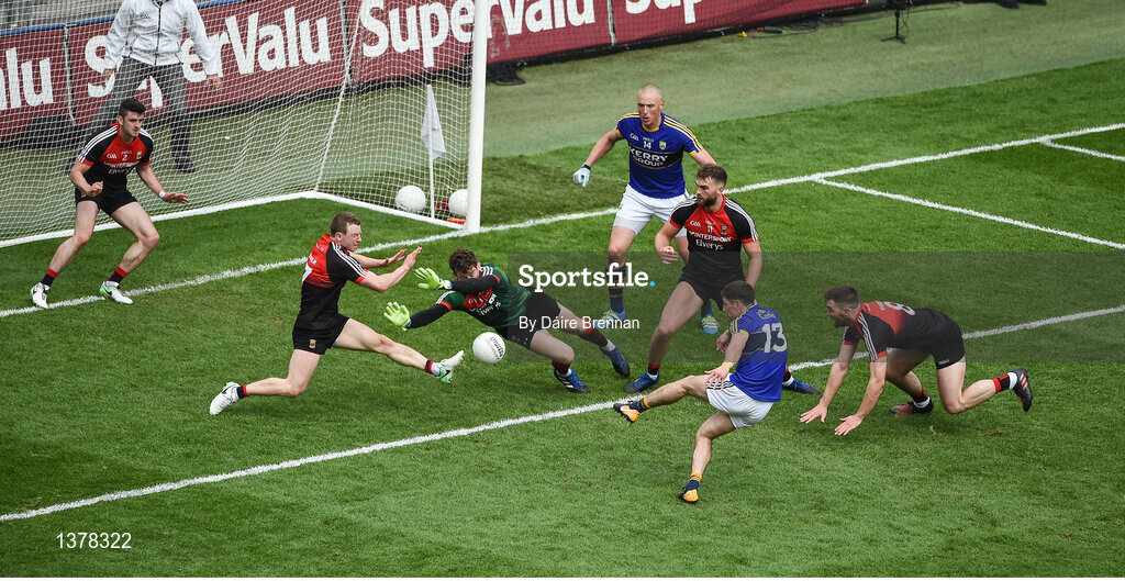 26 August 2017; Paul Geaney of Kerry has his shot saved by David Clarke of Mayo during the GAA Football All-Ireland Senior Championship Semi-Final Replay match between Kerry and Mayo at Croke Park in Dublin. Photo by Daire Brennan/Sportsfile