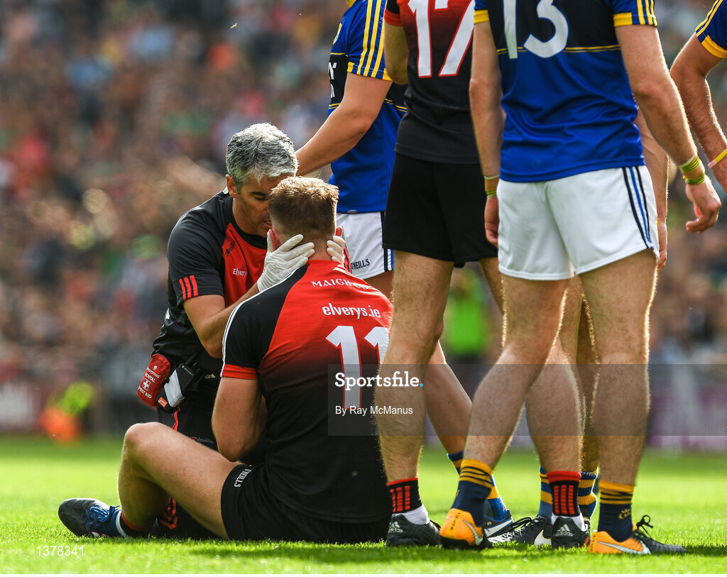 26 August 2017; Aidan O'Shea of Mayo is attended to after an incident with Kerry's Kieran Donaghy, who was shown a red card, during the GAA Football All-Ireland Senior Championship Semi-Final Replay match between Kerry and Mayo at Croke Park in Dublin. Photo by Ray McManus/Sportsfile