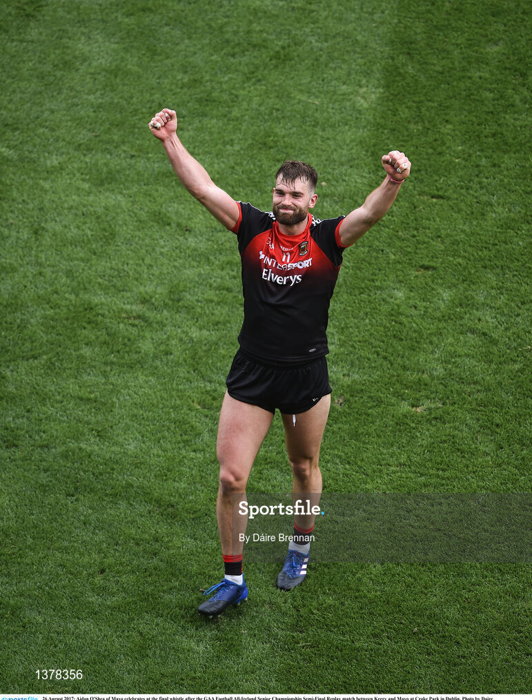 26 August 2017; Aidan O'Shea of Mayo celebrates at the final whistle after the GAA Football All-Ireland Senior Championship Semi-Final Replay match between Kerry and Mayo at Croke Park in Dublin. Photo by Daire Brennan/Sportsfile