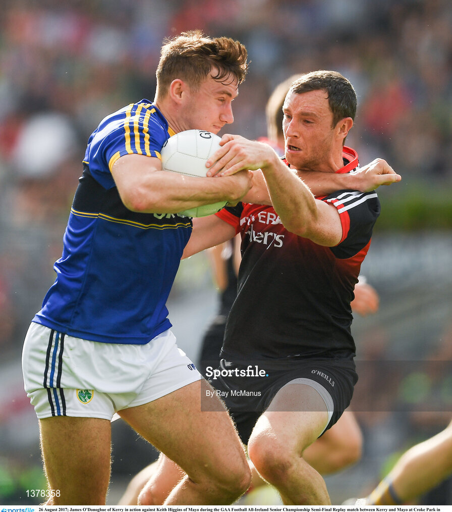 26 August 2017; James O’Donoghue of Kerry in action against Keith Higgins of Mayo during the GAA Football All-Ireland Senior Championship Semi-Final Replay match between Kerry and Mayo at Croke Park in Dublin. Photo by Ray McManus/Sportsfile