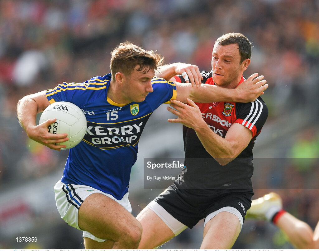 26 August 2017; James O’Donoghue of Kerry in action against Keith Higgins of Mayo during the GAA Football All-Ireland Senior Championship Semi-Final Replay match between Kerry and Mayo at Croke Park in Dublin. Photo by Ray McManus/Sportsfile