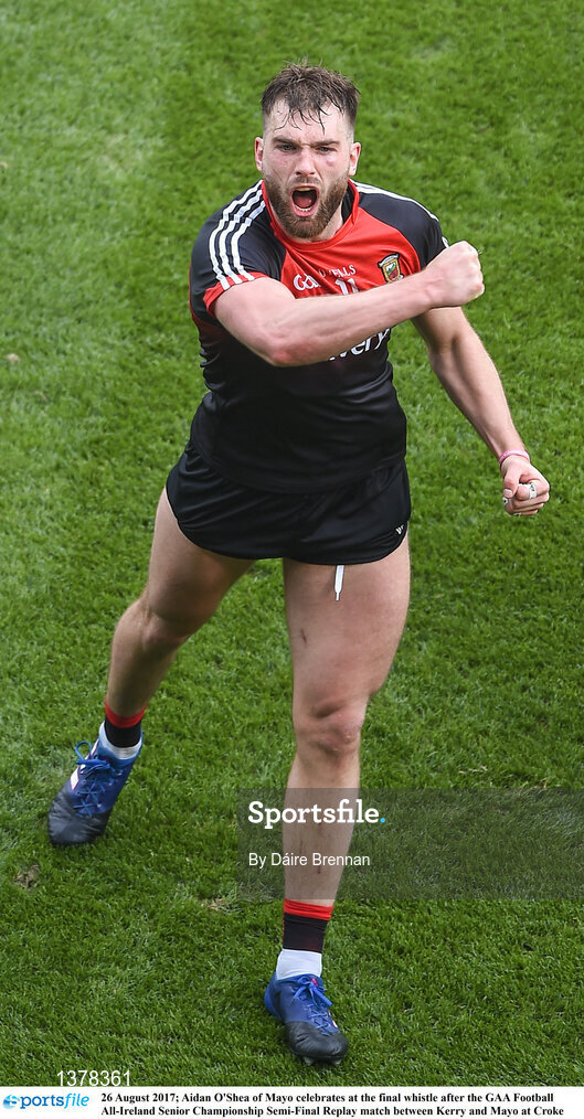 26 August 2017; Aidan O'Shea of Mayo celebrates at the final whistle after the GAA Football All-Ireland Senior Championship Semi-Final Replay match between Kerry and Mayo at Croke Park in Dublin. Photo by Daire Brennan/Sportsfile