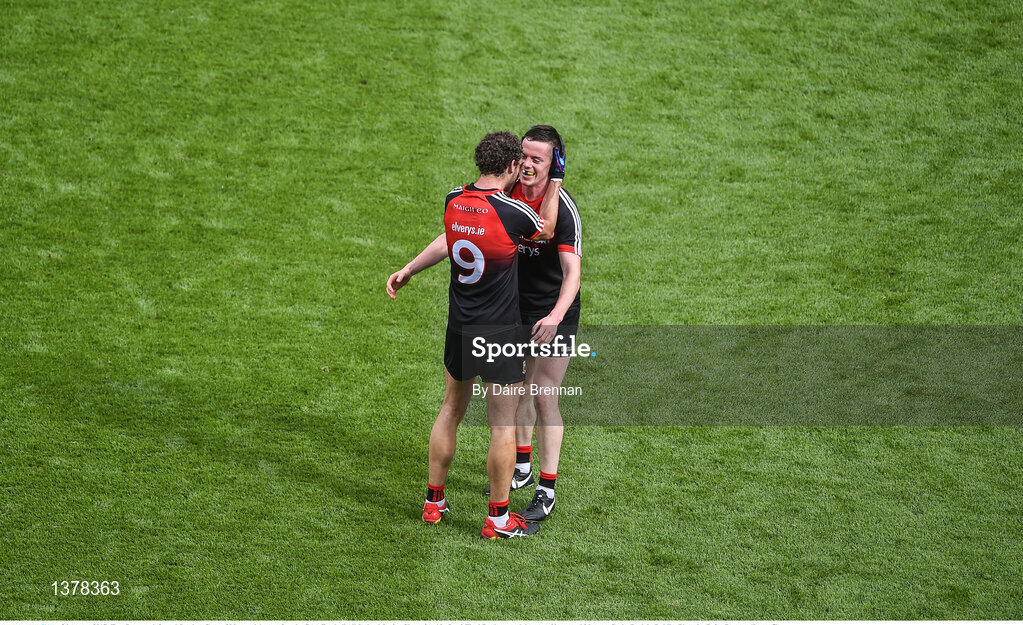 26 August 2017; Tom Parsons, left, and Stephen Coen of Mayo celebrate after the GAA Football All-Ireland Senior Championship Semi-Final Replay match between Kerry and Mayo at Croke Park in Dublin. Photo by Daire Brennan/Sportsfile