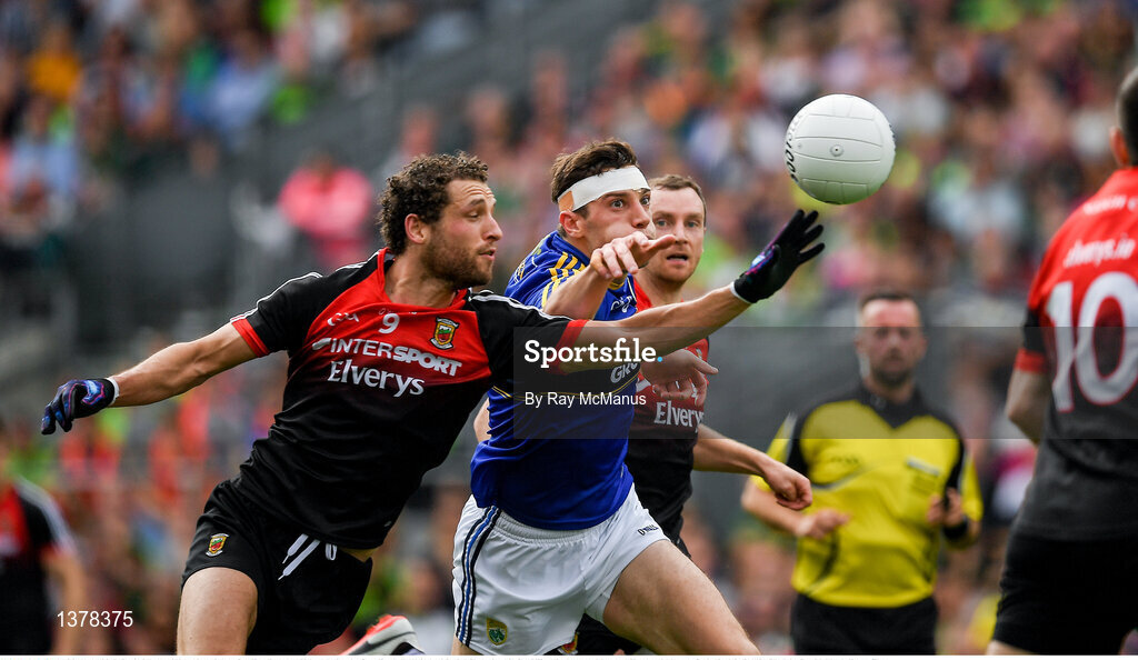 26 August 2017; David Moran of Kerry in action against Tom Parsons of Mayo during the GAA Football All-Ireland Senior Championship Semi-Final Replay match between Kerry and Mayo at Croke Park in Dublin. Photo by Ray McManus/Sportsfile