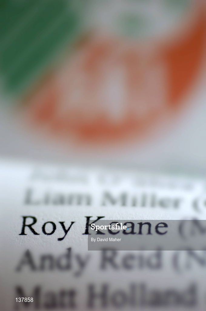20 April 2004; A detailed view of the squad list showing the name of Roy Keane during a Republic of Ireland squad announcement at Jury's Hotel on Parnell Street, Dublin. Photo by David Maher/Sportsfile