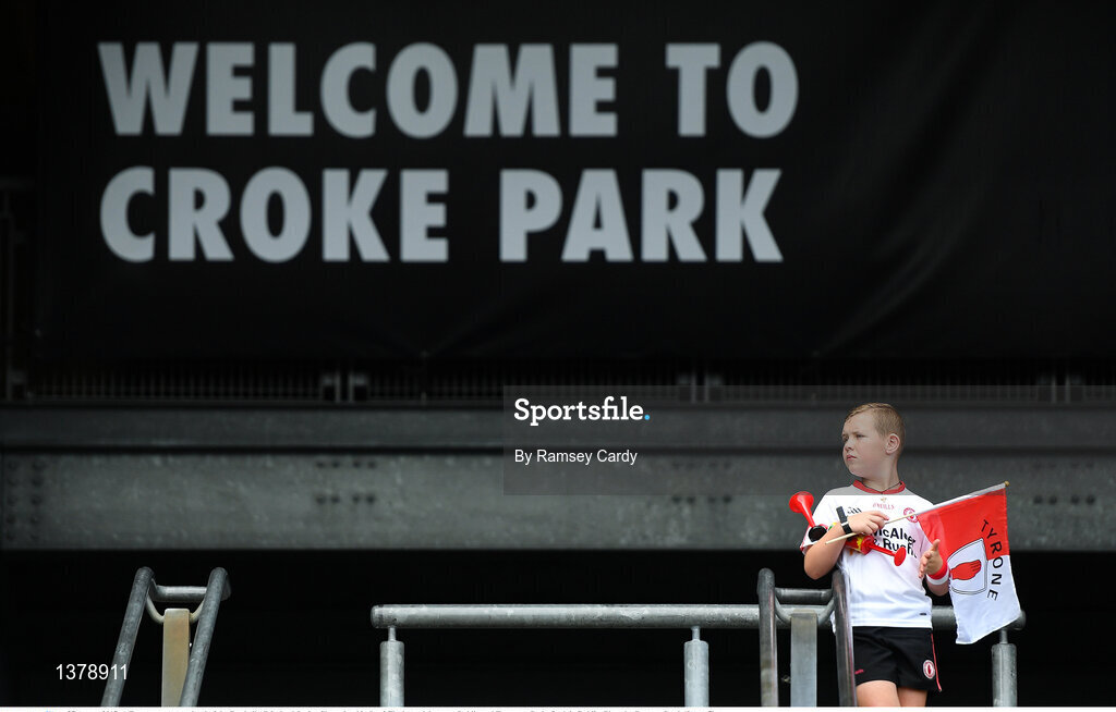 27 August 2017; A Tyrone supporter ahead of the GAA Football All-Ireland Senior Championship Semi-Final match between Dublin and Tyrone at Croke Park in Dublin. Photo by Ramsey Cardy/Sportsfile