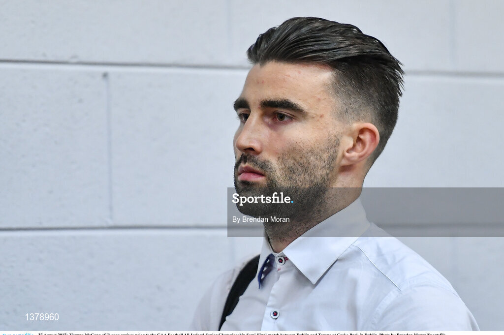 27 August 2017; Tiernan McCann of Tyrone arrives prior to the GAA Football All-Ireland Senior Championship Semi-Final match between Dublin and Tyrone at Croke Park in Dublin. Photo by Brendan Moran/Sportsfile