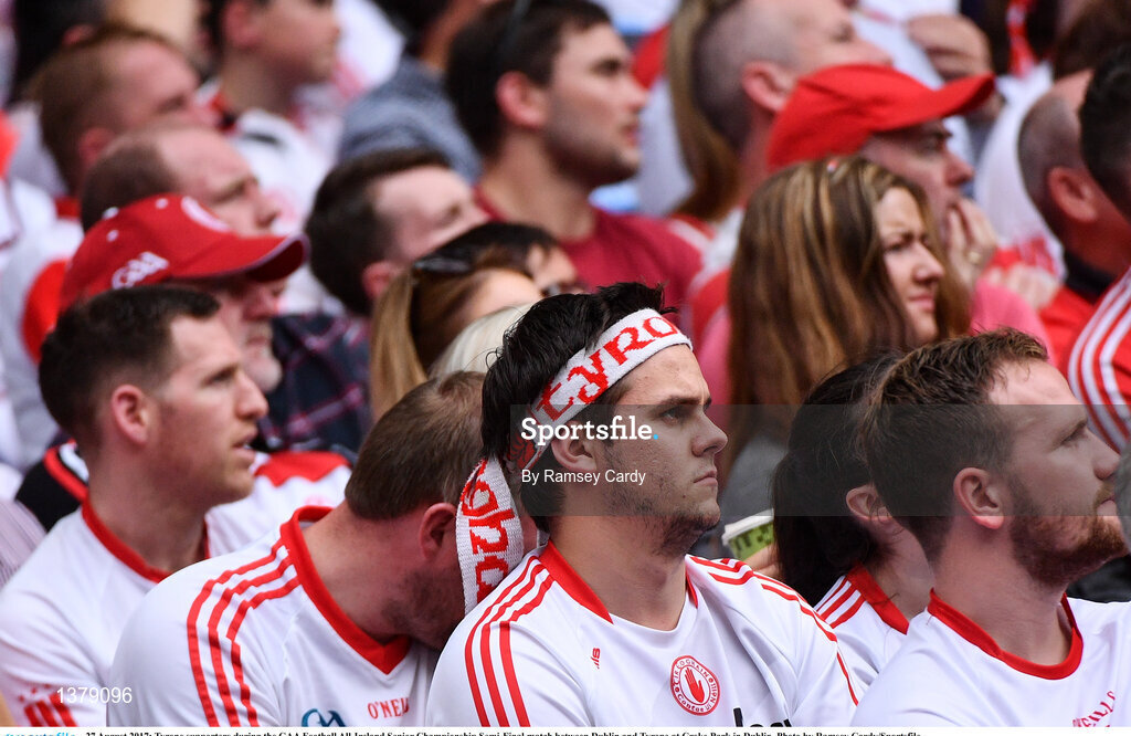 27 August 2017; Tyrone supporters during the GAA Football All-Ireland Senior Championship Semi-Final match between Dublin and Tyrone at Croke Park in Dublin. Photo by Ramsey Cardy/Sportsfile