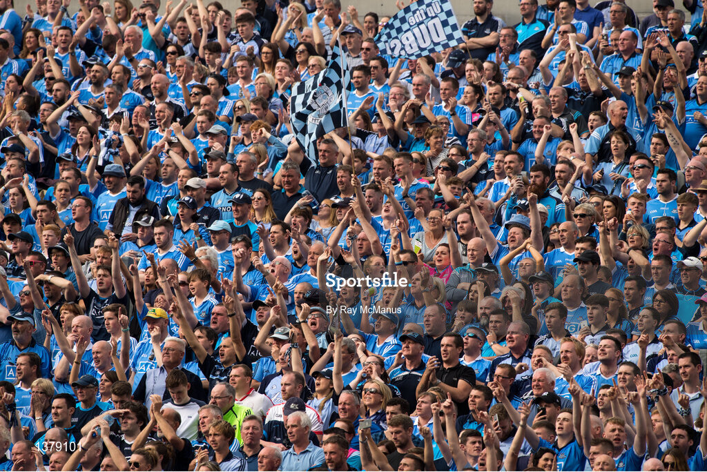 27 August 2017; Dublin supporters on Hill 16 near the end of the GAA Football All-Ireland Senior Championship Semi-Final match between Dublin and Tyrone at Croke Park in Dublin. Photo by Ray McManus/Sportsfile