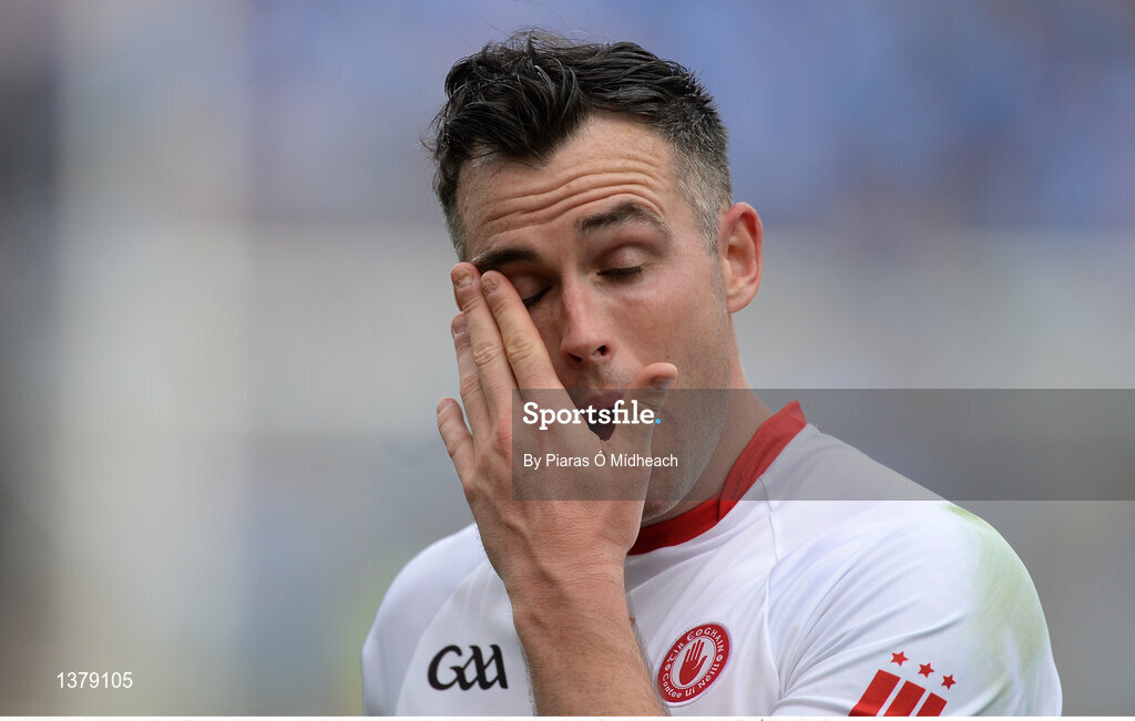 27 August 2017; Cathal McCarron of Tyrone leaves the field dejected after the GAA Football All-Ireland Senior Championship Semi-Final match between Dublin and Tyrone at Croke Park in Dublin. Photo by Piaras Ó Mídheach/Sportsfile