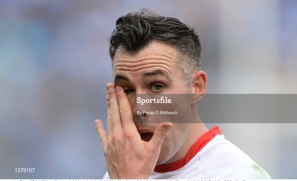 27 August 2017; Cathal McCarron of Tyrone leaves the field dejected after the GAA Football All-Ireland Senior Championship Semi-Final match between Dublin and Tyrone at Croke Park in Dublin. Photo by Piaras Ó Mídheach/Sportsfile