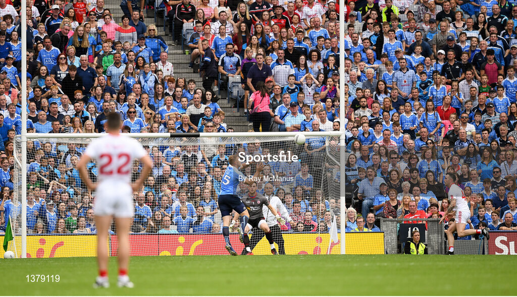 27 August 2017; Eoghan O'Gara scores the second Dublin goal, in the 68th minute, during the GAA Football All-Ireland Senior Championship Semi-Final match between Dublin and Tyrone at Croke Park in Dublin. Photo by Ray McManus/Sportsfile