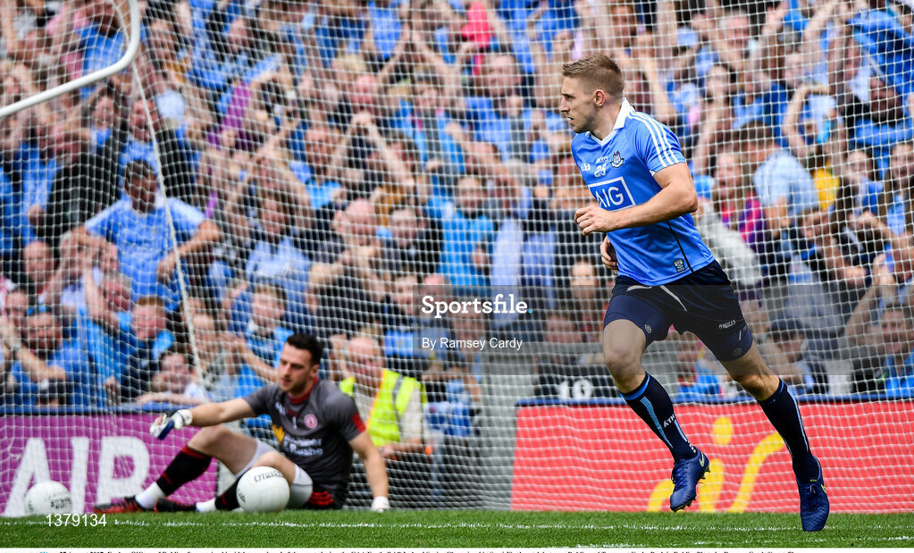 27 August 2017; Eoghan O'Gara of Dublin after scoring his side's second goal of the game during the GAA Football All-Ireland Senior Championship Semi-Final match between Dublin and Tyrone at Croke Park in Dublin. Photo by Ramsey Cardy/Sportsfile
