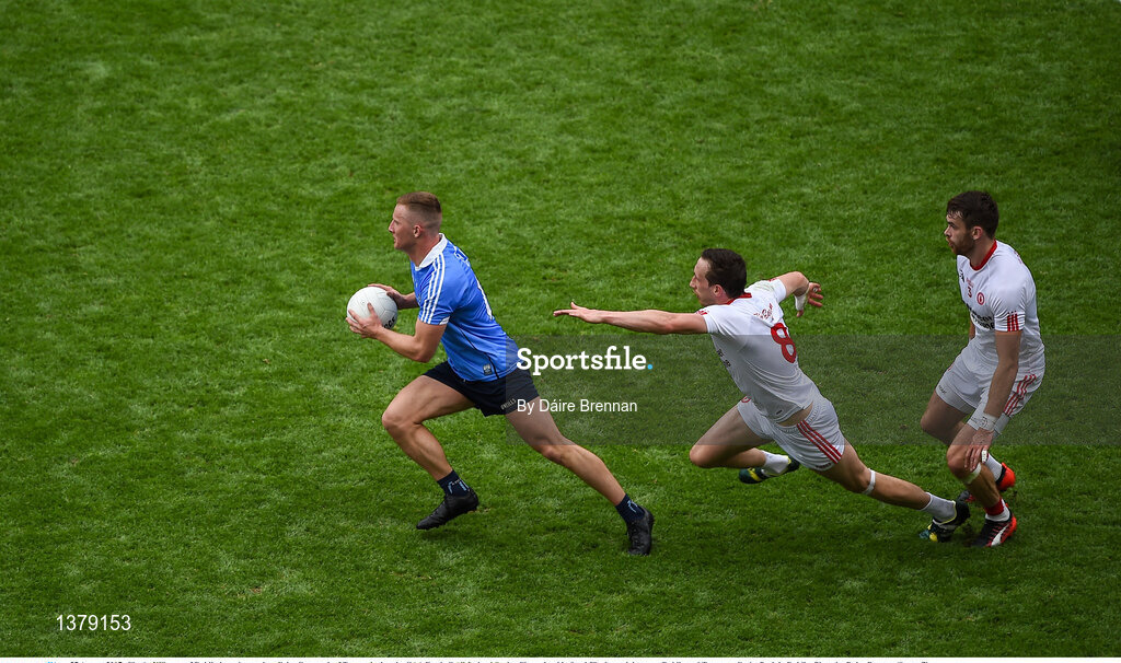 27 August 2017; Ciarán Kilkenny of Dublin in action against Colm Cavanagh of Tyrone during the GAA Football All-Ireland Senior Championship Semi-Final match between Dublin and Tyrone at Croke Park in Dublin. Photo by Daire Brennan/Sportsfile