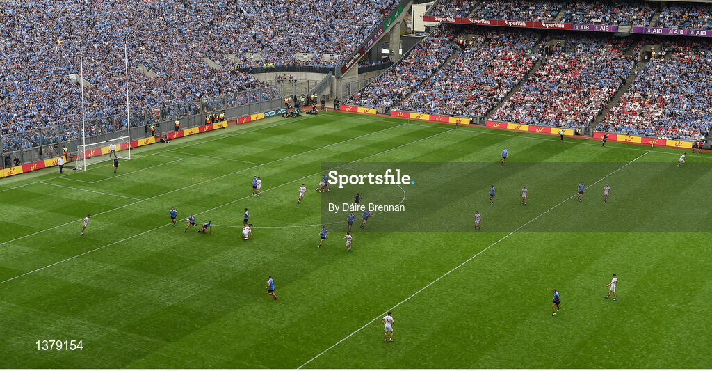 27 August 2017; Ciarán Kilkenny comes away with the ball as 27 players are in the GAA Dublin half during the Football All-Ireland Senior Championship Semi-Final match between Dublin and Tyrone at Croke Park in Dublin. Photo by Daire Brennan/Sportsfile