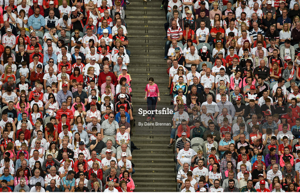 27 August 2017; A Tyrone supporter makes her way back to her seat in the Cusack Stand during the GAA Football All-Ireland Senior Championship Semi-Final match between Dublin and Tyrone at Croke Park in Dublin. Photo by Daire Brennan/Sportsfile