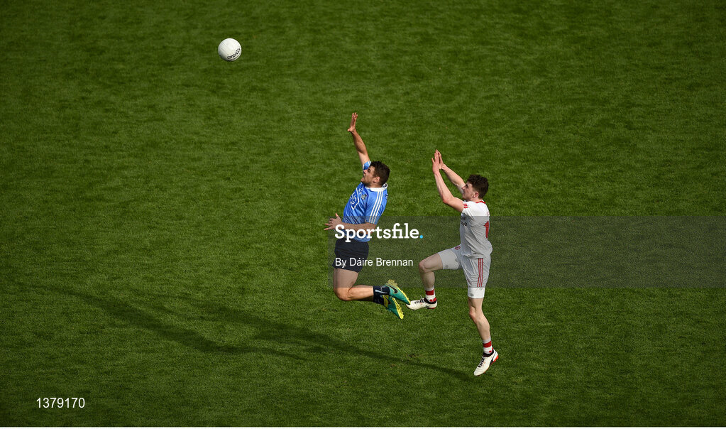 27 August 2017; Kevin McManamon of Dublin in action against Rory Brennan of Tyrone during the GAA Football All-Ireland Senior Championship Semi-Final match between Dublin and Tyrone at Croke Park in Dublin. Photo by Daire Brennan/Sportsfile