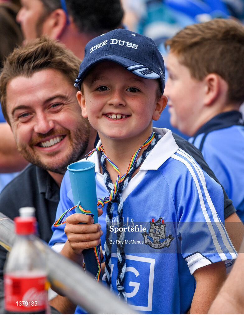 27 August 2017; Dublin supporter Pierce Moran, from Swords in the Cusack Stand, before the GAA Football All-Ireland Senior Championship Semi-Final match between Dublin and Tyrone at Croke Park in Dublin. Photo by Ray McManus/Sportsfile
