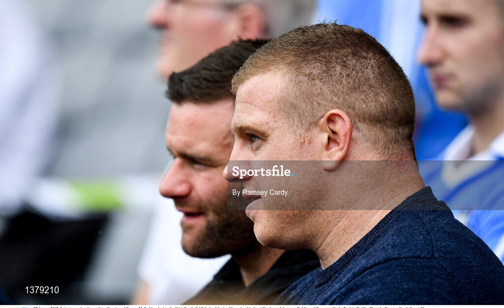 27 August 2017; Leinster rugby players Sean Cronin and Fergus McFadden during the GAA Football All-Ireland Senior Championship Semi-Final match between Dublin and Tyrone at Croke Park in Dublin. Photo by Ramsey Cardy/Sportsfile
