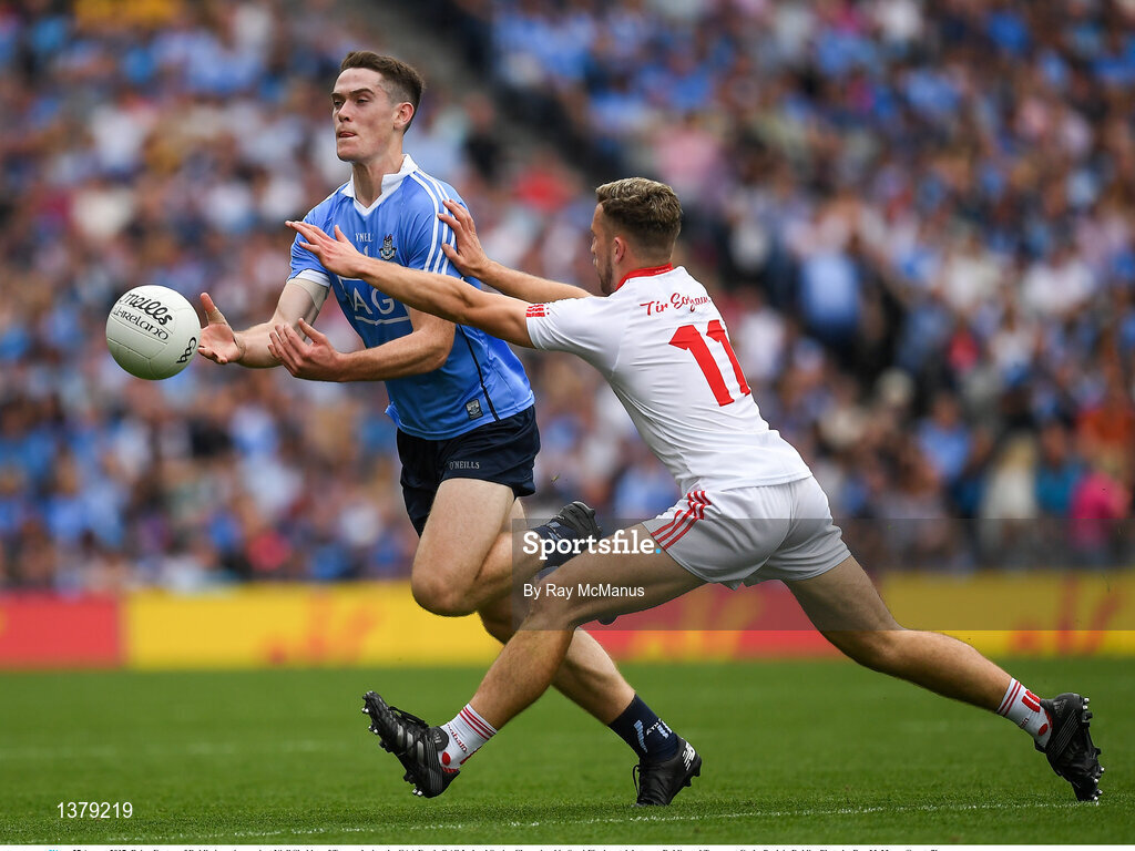 27 August 2017; Brian Fenton of Dublin in action against Niall Sludden of Tyrone during the GAA Football All-Ireland Senior Championship Semi-Final match between Dublin and Tyrone at Croke Park in Dublin. Photo by Ray McManus/Sportsfile