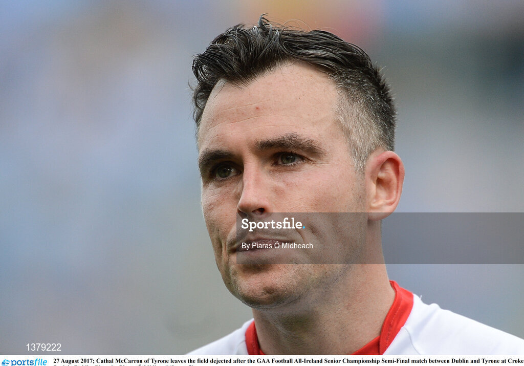 27 August 2017; Cathal McCarron of Tyrone leaves the field dejected after the GAA Football All-Ireland Senior Championship Semi-Final match between Dublin and Tyrone at Croke Park in Dublin. Photo by Piaras Ó Mídheach/Sportsfile