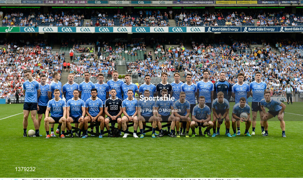 27 August 2017; The Dublin squad before the GAA Football All-Ireland Senior Championship Semi-Final match between Dublin and Tyrone at Croke Park in Dublin. Photo by Piaras Ó Mídheach/Sportsfile
