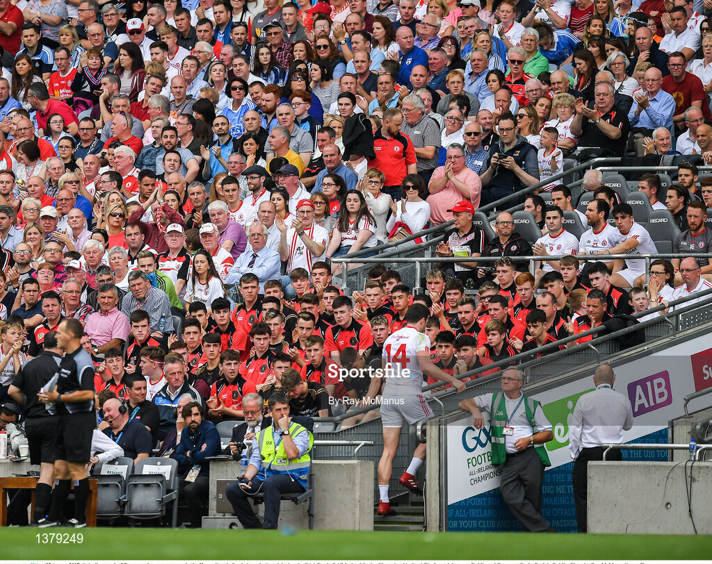 27 August 2017; Seán Cavanagh of Tyrone makes way to a seat in the Hogan Stand after being substituted during the GAA Football All-Ireland Senior Championship Semi-Final match between Dublin and Tyrone at Croke Park in Dublin. Photo by Ray McManus/Sportsfile