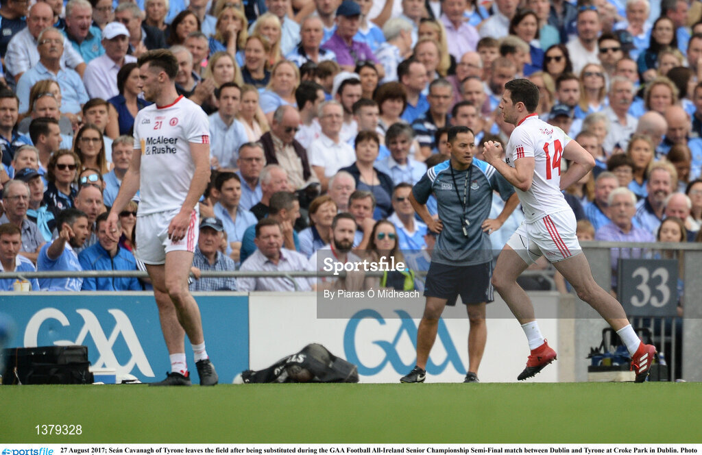 27 August 2017; Seán Cavanagh of Tyrone leaves the field after being substituted during the GAA Football All-Ireland Senior Championship Semi-Final match between Dublin and Tyrone at Croke Park in Dublin. Photo by Piaras Ó Mídheach/Sportsfile