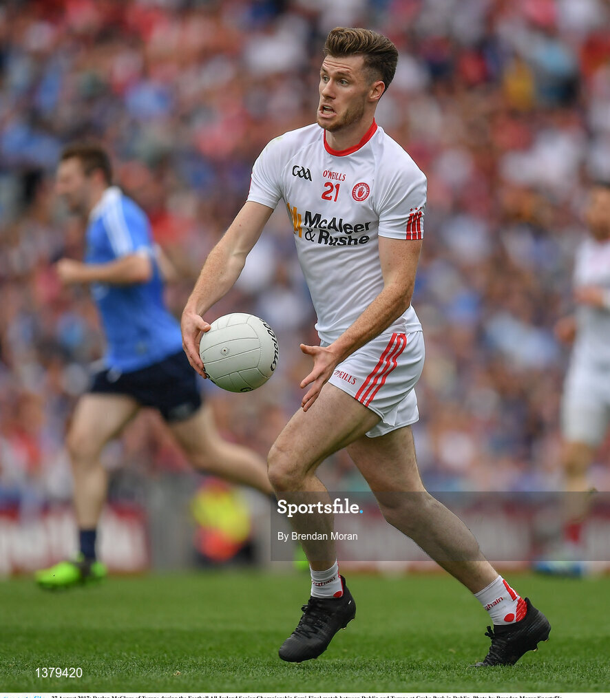 27 August 2017; Declan McClure of Tyrone during the Football All-Ireland Senior Championship Semi-Final match between Dublin and Tyrone at Croke Park in Dublin. Photo by Brendan Moran/Sportsfile
