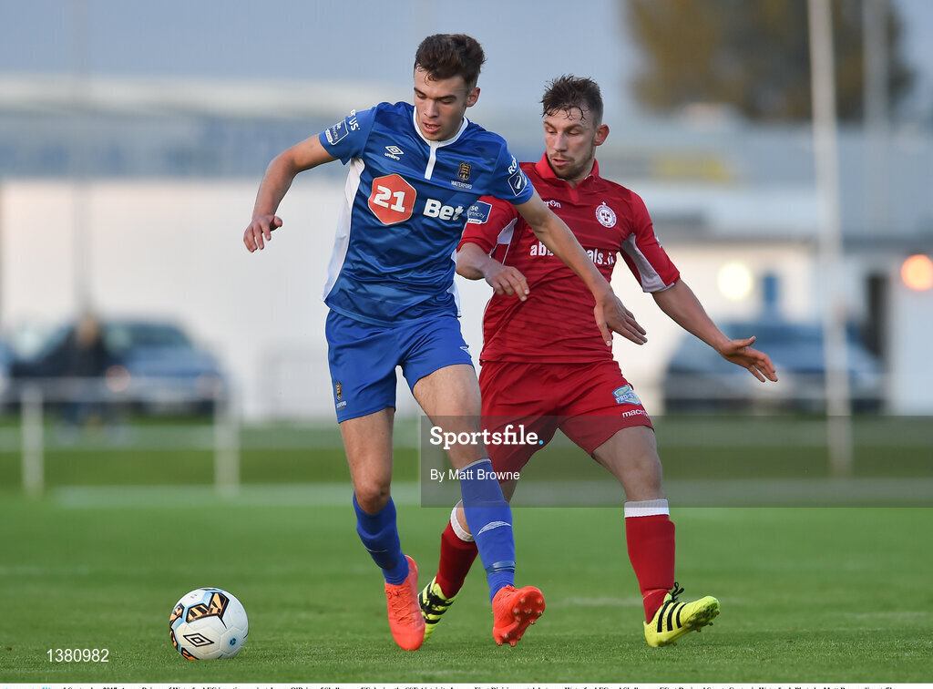 1 September 2017; Aaron Drinan of Waterford FC in action against James O'Brien of Shelbourne FC during the SSE Airtricity League First Division match between Waterford FC and Shelbourne FC at Regional Sports Centre in Waterford. Photo by Matt Browne/Sportsfile
