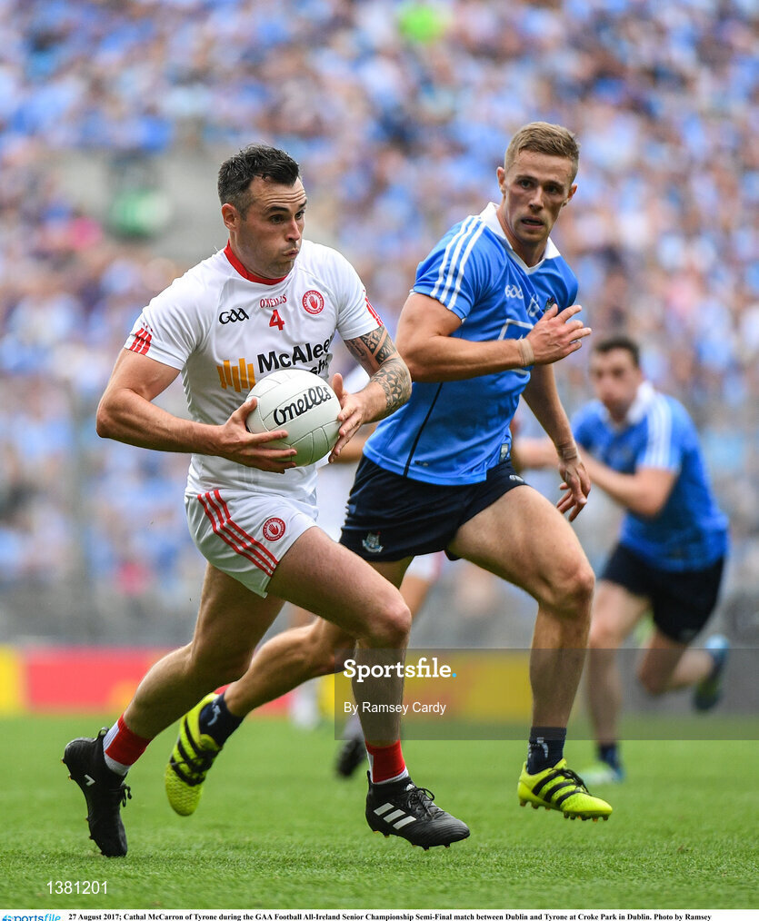 27 August 2017; Cathal McCarron of Tyrone during the GAA Football All-Ireland Senior Championship Semi-Final match between Dublin and Tyrone at Croke Park in Dublin. Photo by Ramsey Cardy/Sportsfile