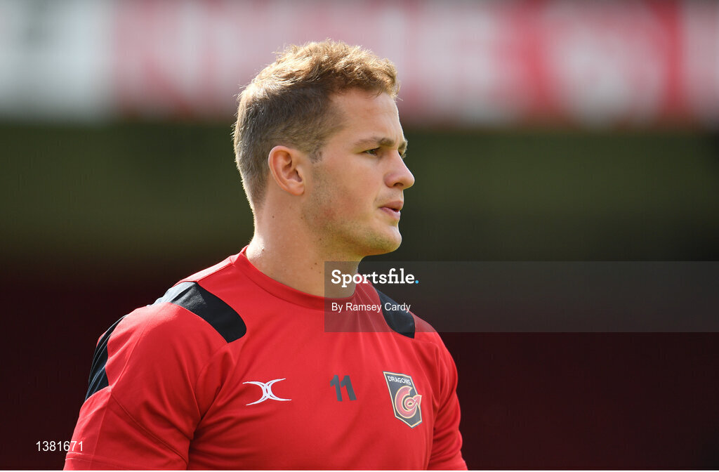2 September 2017; Hallam Amos of Dragons ahead of the Guinness PRO14 Round 1 match between Dragons and Leinster at Rodney Parade in Newport, Wales. Photo by Ramsey Cardy/Sportsfile
