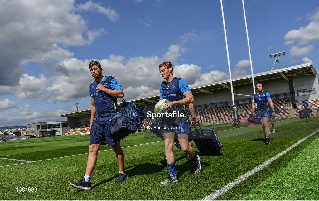 2 September 2017; Ross Byrne, left, and Cathal Marsh of Leinster ahead of the Guinness PRO14 Round 1 match between Dragons and Leinster at Rodney Parade in Newport, Wales. Photo by Ramsey Cardy/Sportsfile