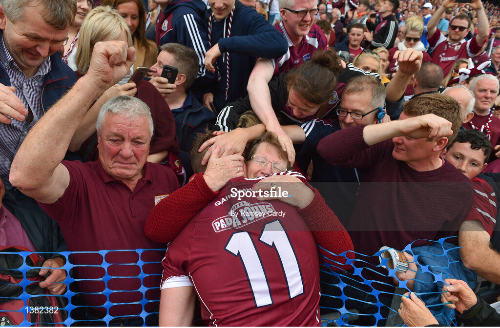 3 September 2017; Galway's Joe Canning celebrates with his mother Josephine following the GAA Hurling All-Ireland Senior Championship Final match between Galway and Waterford at Croke Park in Dublin. Photo by Ramsey Cardy/Sportsfile