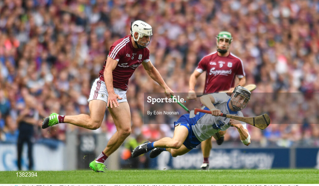 3 September 2017; Jamie Barron of Waterford in action against Gearóid McInerney of Galway during the GAA Hurling All-Ireland Senior Championship Final match between Galway and Waterford at Croke Park in Dublin. Photo by Eóin Noonan/Sportsfile