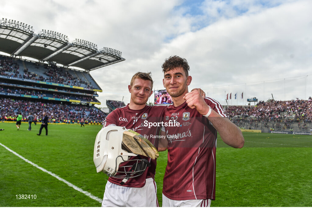 3 September 2017; Galway's Joe Canning, left, and Jason Flynn celebrate following the GAA Hurling All-Ireland Senior Championship Final match between Galway and Waterford at Croke Park in Dublin. Photo by Ramsey Cardy/Sportsfile