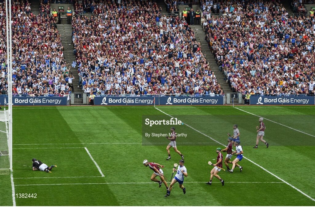 3 September 2017; Kevin Moran of Waterford celebrates after scoring his side's first goal past Galway goalkeeper Colm Callanan during the GAA Hurling All-Ireland Senior Championship Final match between Galway and Waterford at Croke Park in Dublin. Photo by Stephen McCarthy/Sportsfile