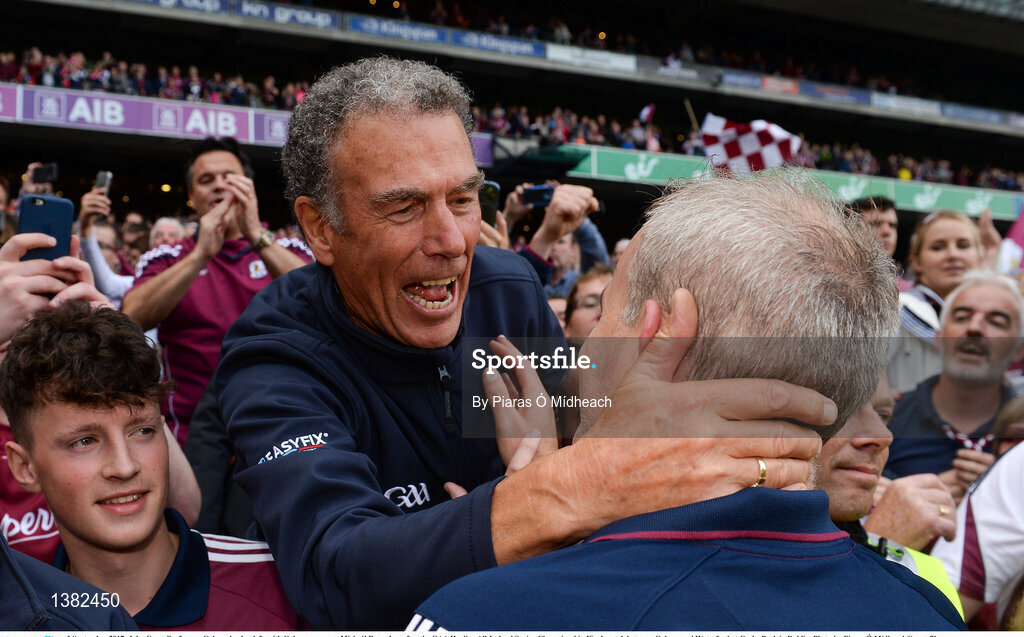 3 September 2017; John Connolly, former Galway hurler, left, with Galway manager Micheál Donoghue after the GAA Hurling All-Ireland Senior Championship Final match between Galway and Waterford at Croke Park in Dublin. Photo by Piaras Ó Mídheach/Sportsfile