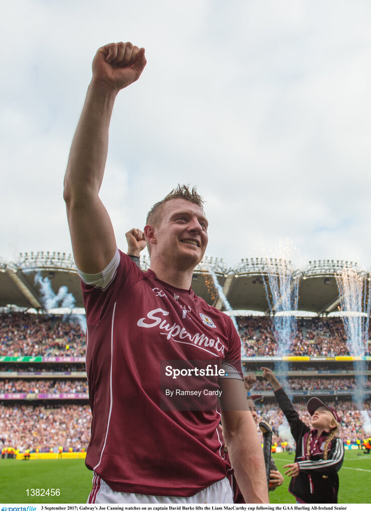 3 September 2017; Galway's Joe Canning watches on as captain David Burke lifts the Liam MacCarthy cup following the GAA Hurling All-Ireland Senior Championship Final match between Galway and Waterford at Croke Park in Dublin. Photo by Ramsey Cardy/Sportsfile