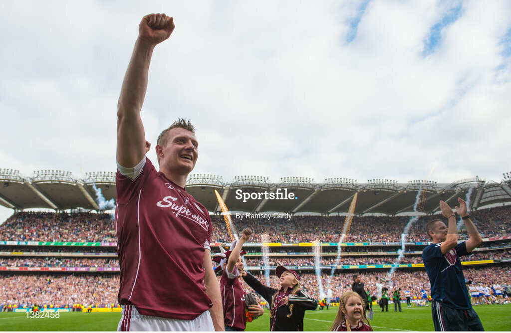 3 September 2017; Galway's Joe Canning watches on as captain David Burke lifts the Liam MacCarthy cup following the GAA Hurling All-Ireland Senior Championship Final match between Galway and Waterford at Croke Park in Dublin. Photo by Ramsey Cardy/Sportsfile